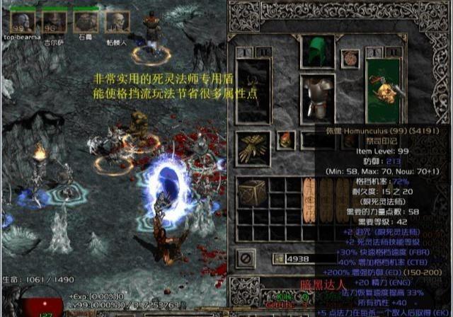 暗黑破坏神2(银死灵法师)属性:2 所有技能50 力量150 生命80–100 防御强化
