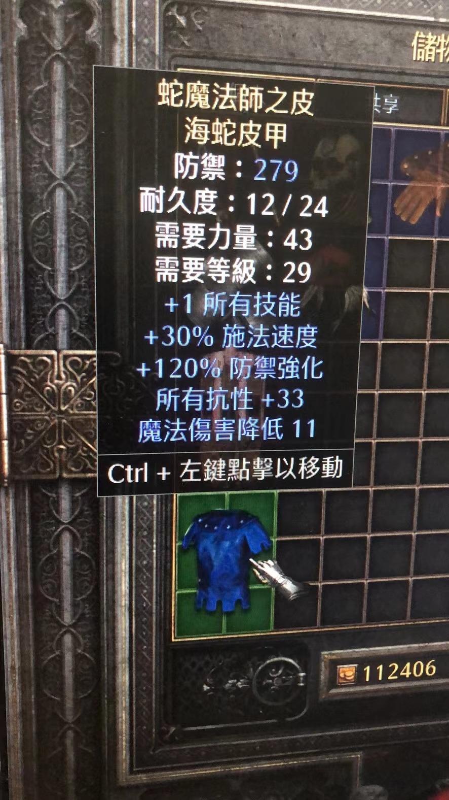 新世界(蛇魔法師之皮)属性:1 所有技能3035 快速施法20–35 全抗性0–20 法力